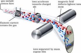 Then we got back our quiz, and proceeded to talk about atomic mass. We learned that the atomic mass listed on the periodic table is the average of the most common atomic masses of an element. In order to find the atomic mass you do not weigh the atom, but instead you compare 1 atoms mass to another. In order to find this difference, you must shoot the atoms through a magnetic field, and compare how much 1 atom bends (upward or downward) to how much another atom bends. The more an atom bends, the greater the atomic mass. (Pg. 14 for help).